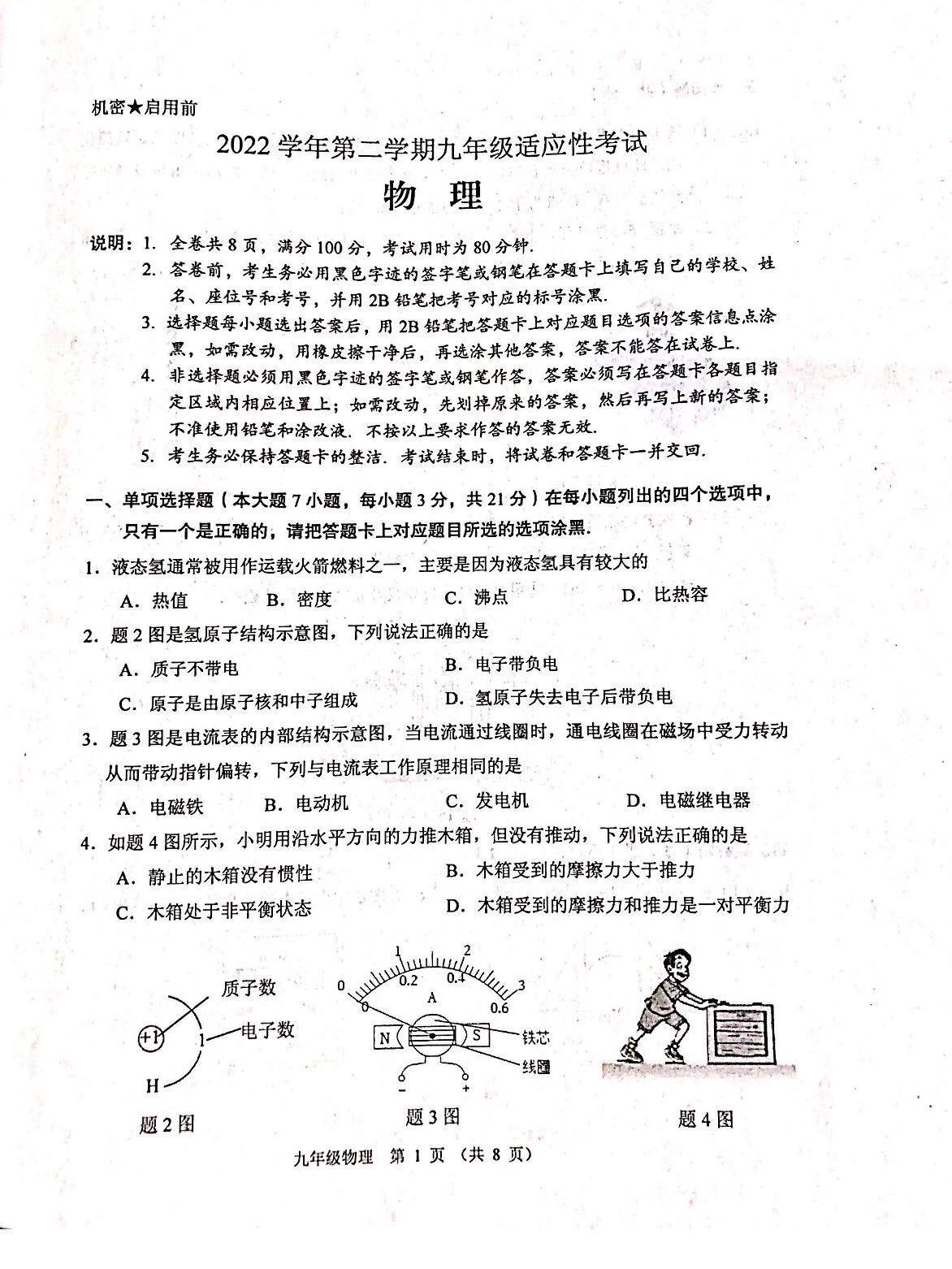 2023年广东省佛山市顺德区&高明区·中考二模·【5月】物理
