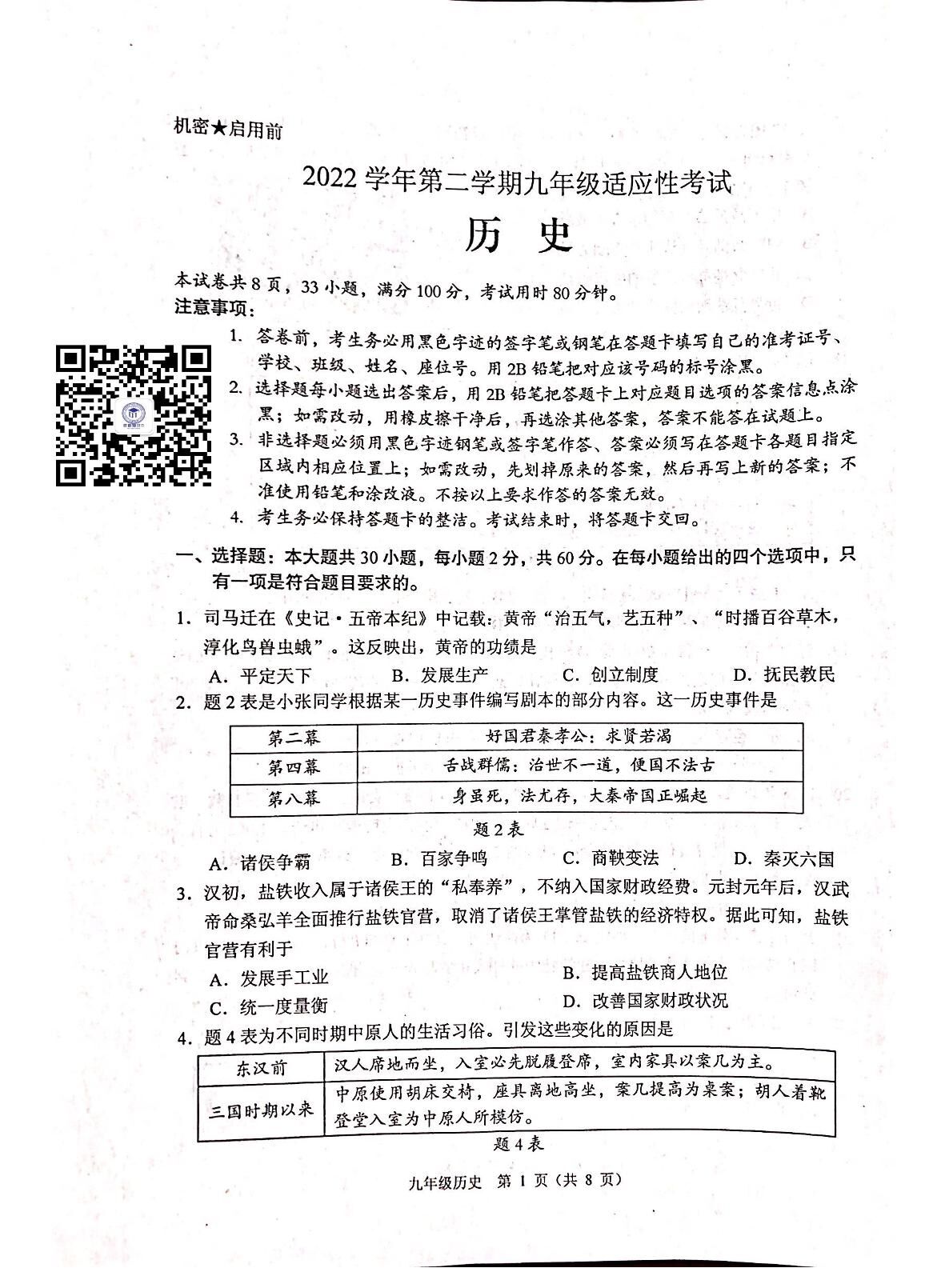 2023年广东省佛山市顺德区&高明区·中考二模·【5月】历史