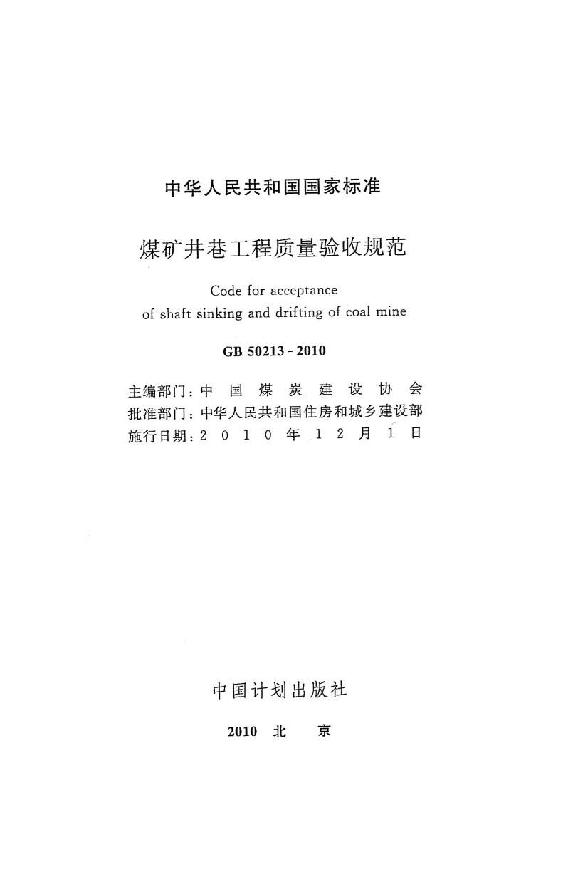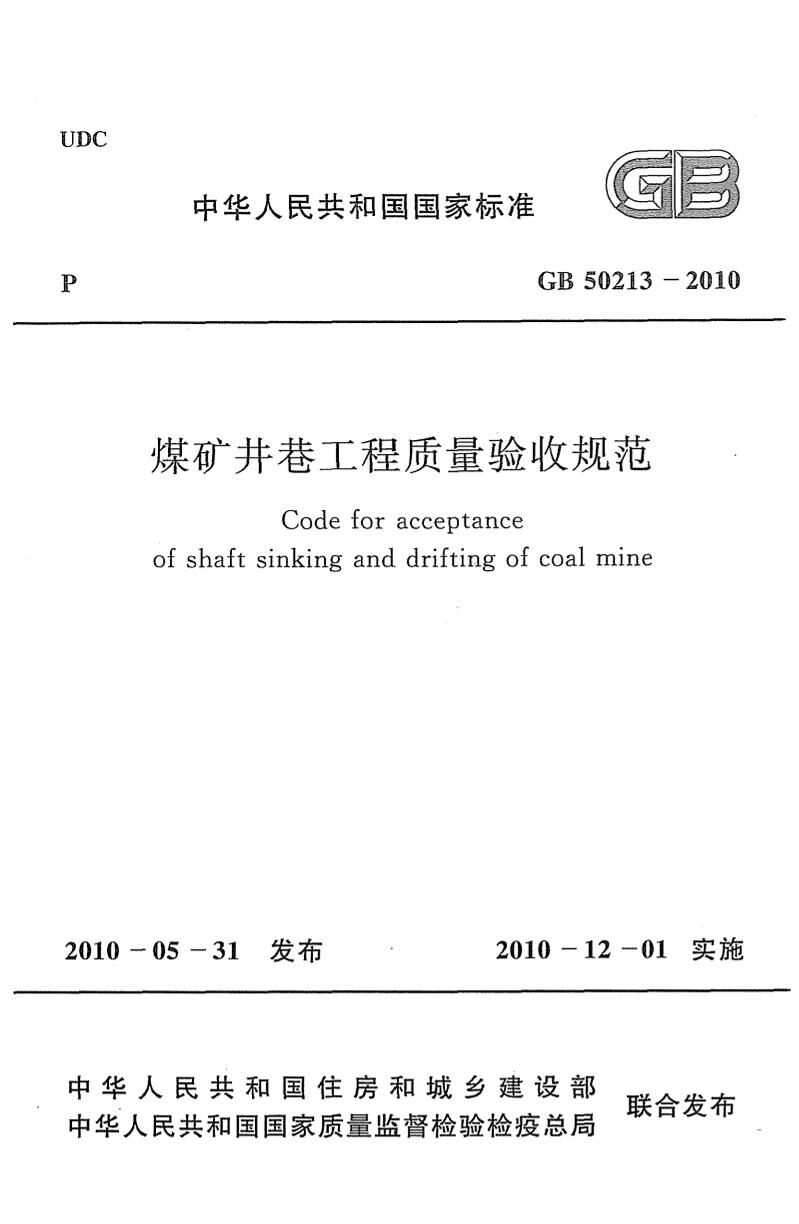 GB 50213-2010煤矿井巷工程质量验收规范