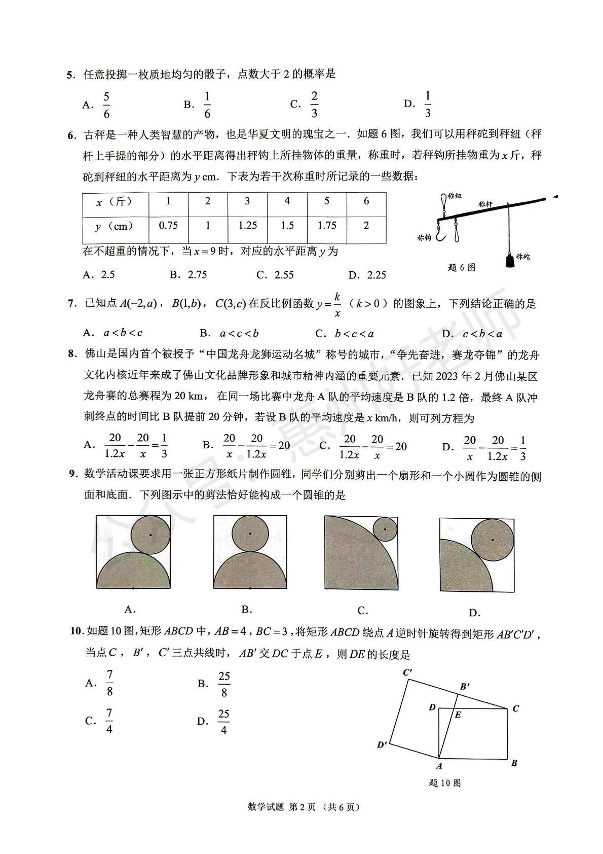 广东省佛山市2023-2024学年九年级下学期3月月考数学试题