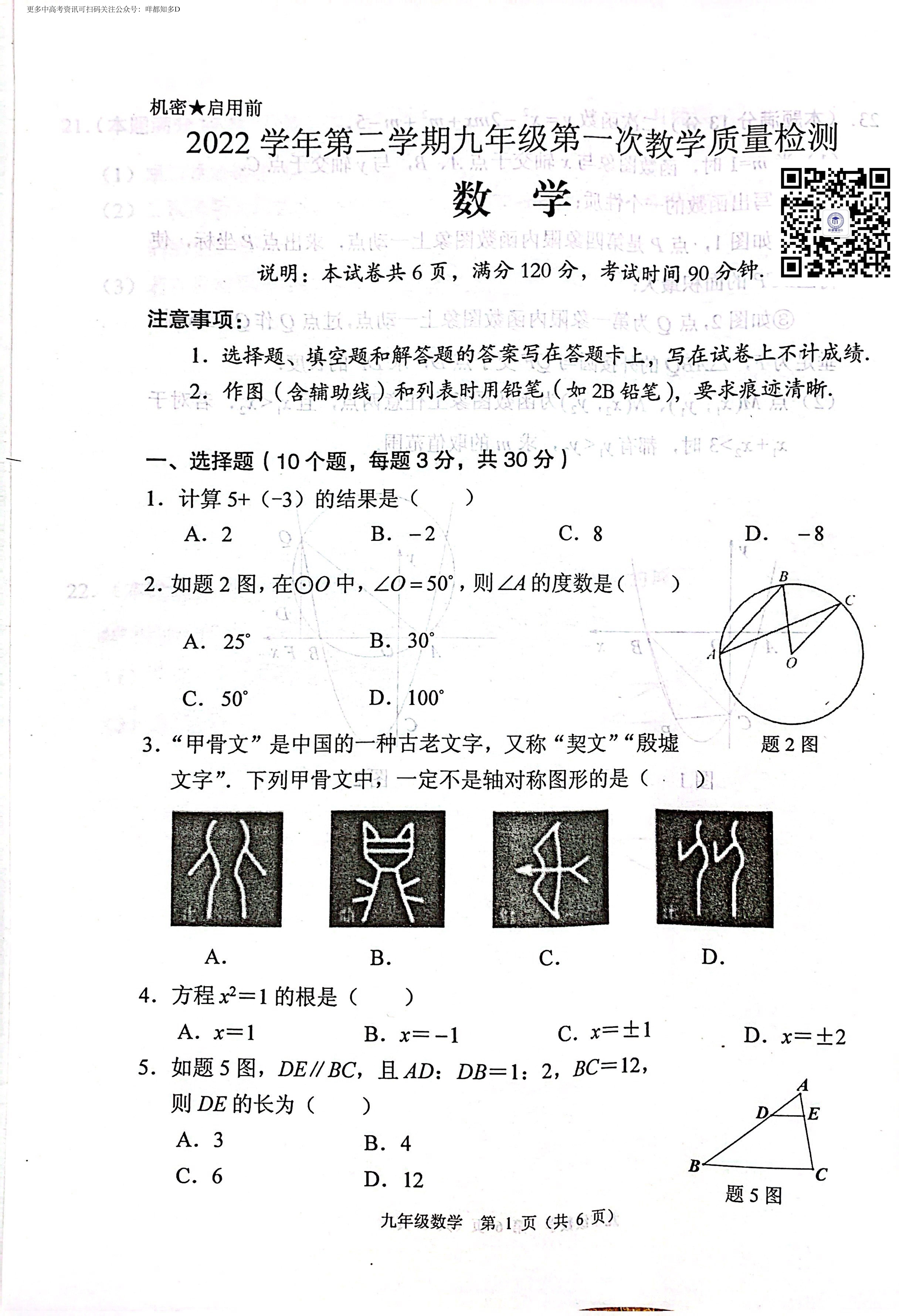 2023年广东省佛山市顺德区&高明区·中考一模【数学】