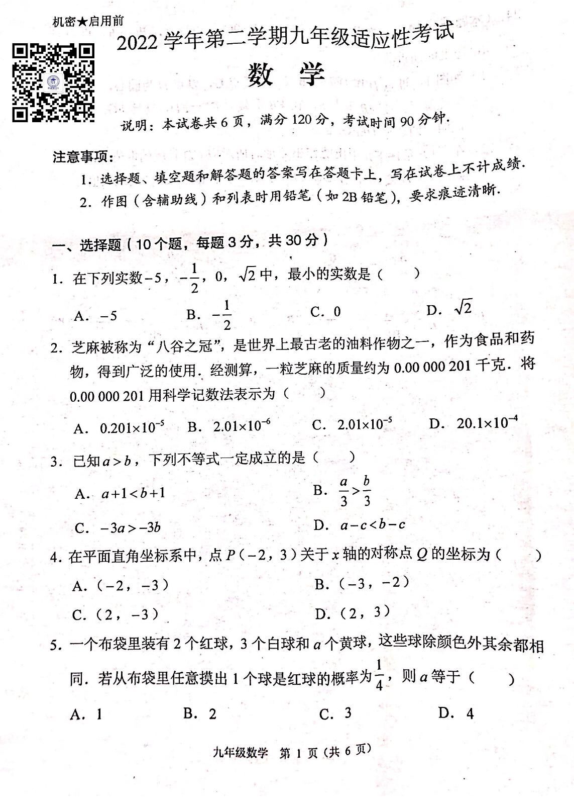2023年广东省佛山市顺德区&高明区·中考二模·【5月】数学