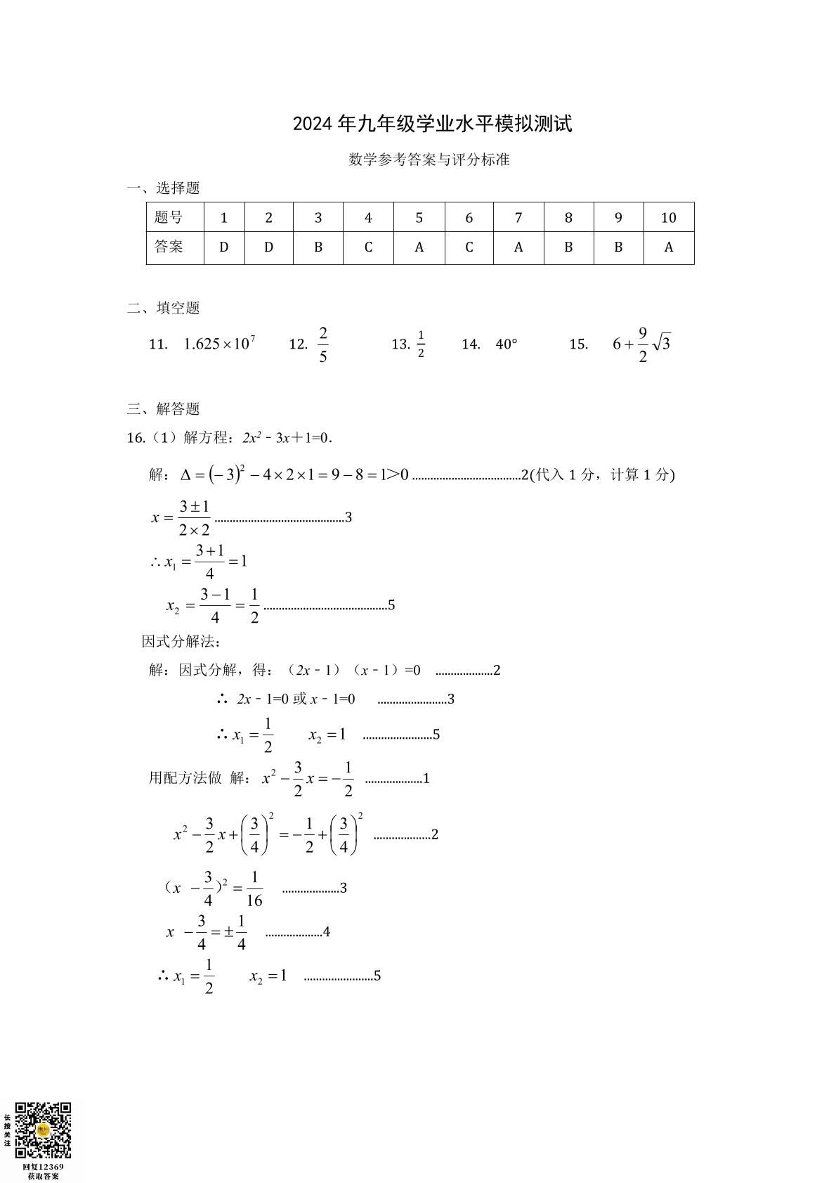 答案·02数学·2024届佛山中考·禅城区·中考二模